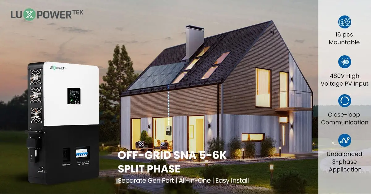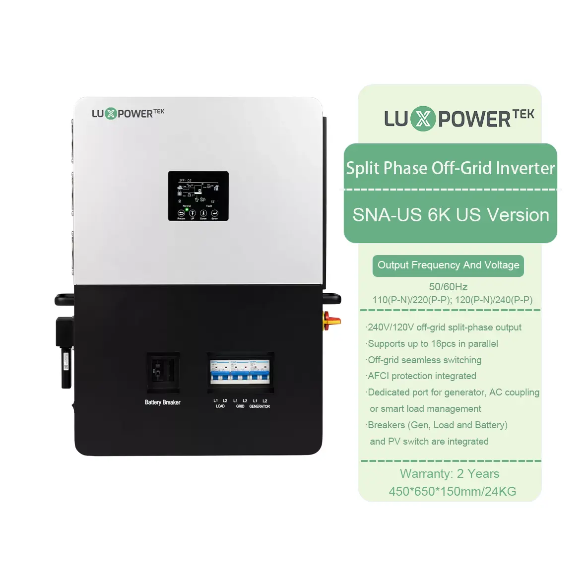 高品質のLuxPower SNA US 6000スプリットフェーズインバーター、コンパクトで、設置が簡単で、費用対効果が高く、2〜4人の個人を含む小規模世帯のエネルギー独立ニーズを満たすように綿密に設計されています。