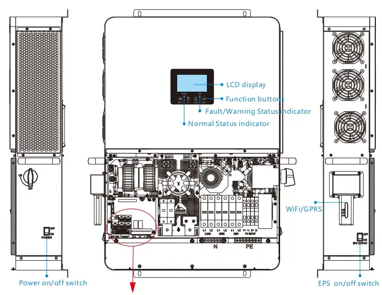 オフグリッドエネルギー貯蔵用に設計されたLuxPower SNA US 6000は、専用のジェネレーターインターフェイスと6kW出力を備えたEPSインターフェイスを備えています。